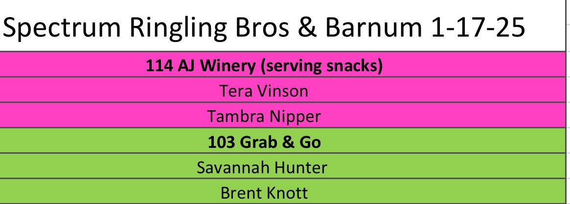 - 114 AJ Winery (serving snacks) – 2 volunteers