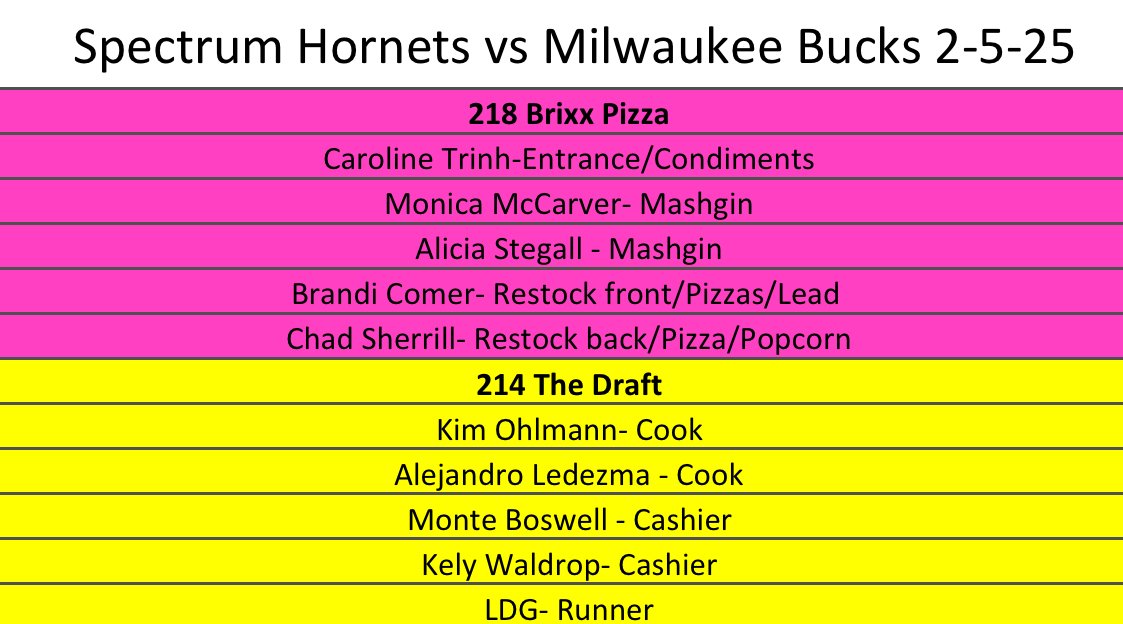 - 218 Brixx Pizza – 5 volunteers