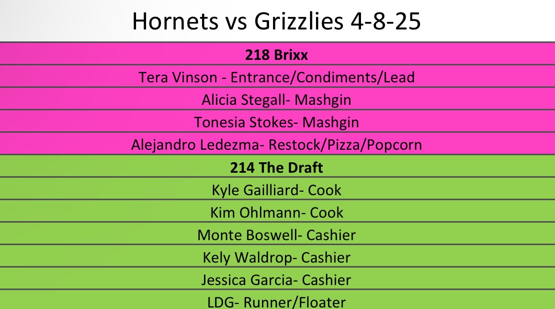 - 218 Brixx Pizza – 6 volunteers