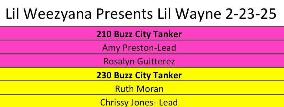 - 210 Buzz City Tanker – 2 volunteers