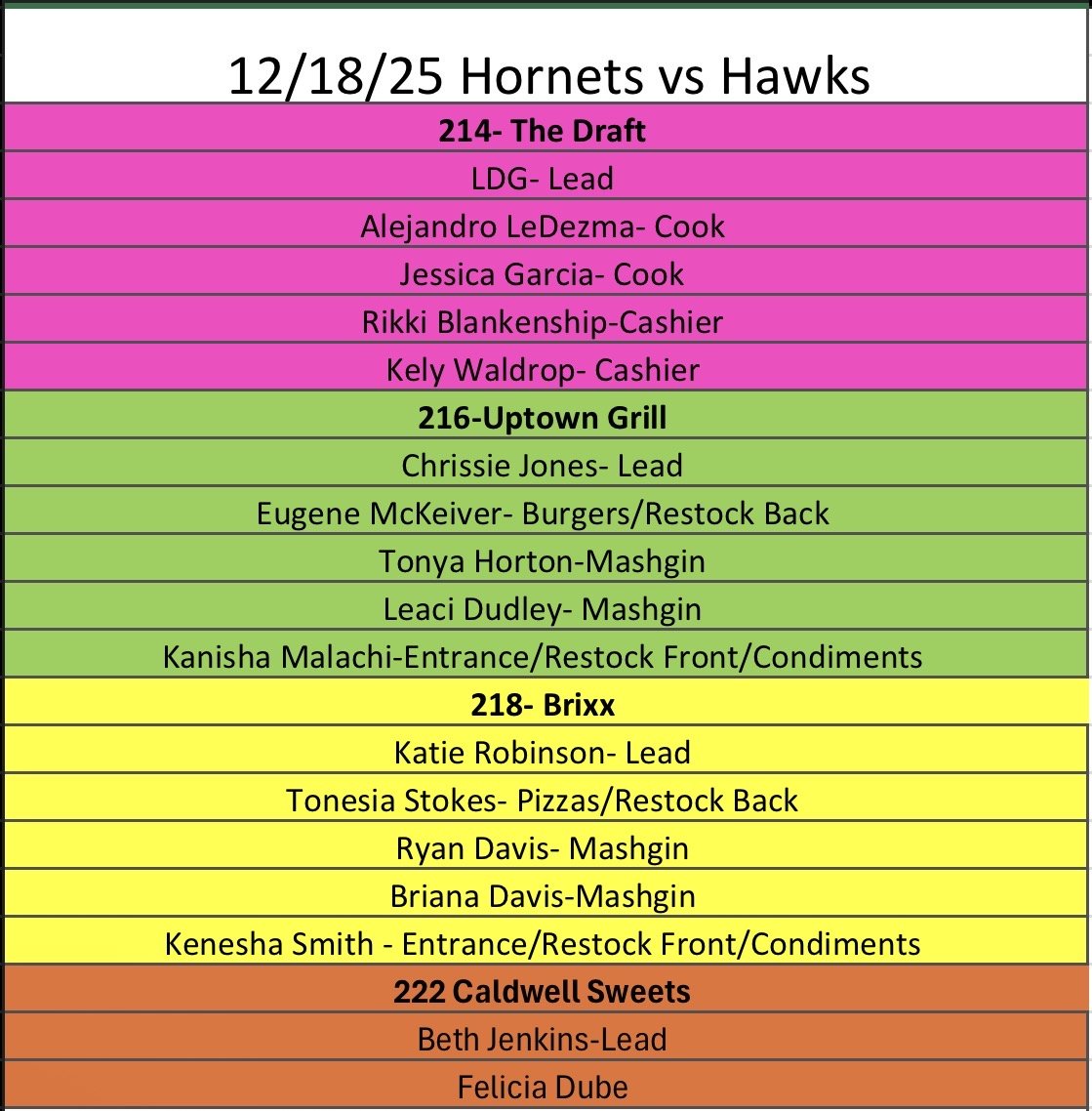 Please make sure all volunteers are eating family meal prior to their shift and are NOT eating or drinking in view of patrons during their shift. Once your location has closed and a Supervisor checked you out, please return your uniform and exit the Arena. You CANNOT be in the bowl or hang out as a patron unless you bought a ticket.