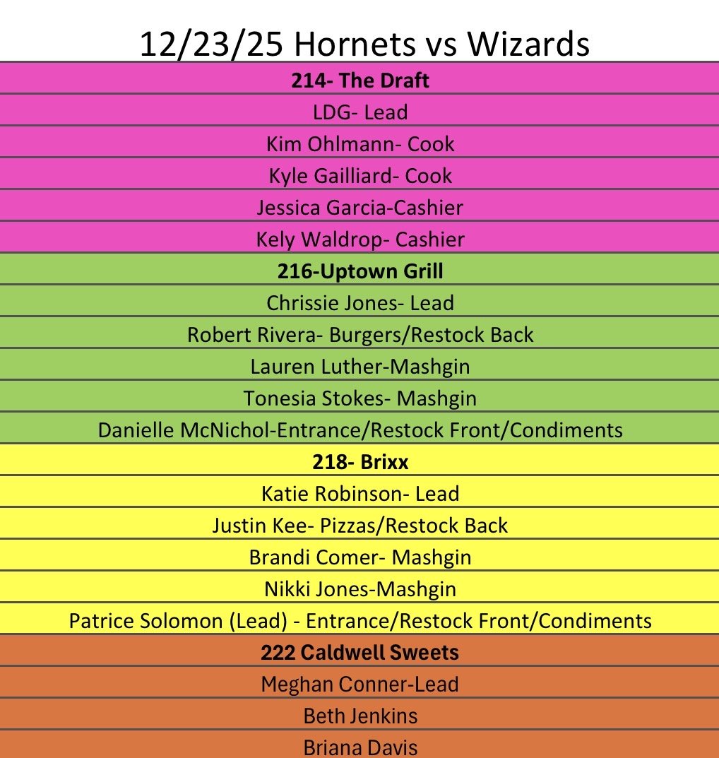 Please make sure all volunteers are eating family meal prior to their shift and are NOT eating or drinking in view of patrons during their shift. Once your location has closed and a Supervisor checked you out, please return your uniform and exit the Arena. You CANNOT be in the bowl or hang out as a patron unless you bought a ticket.