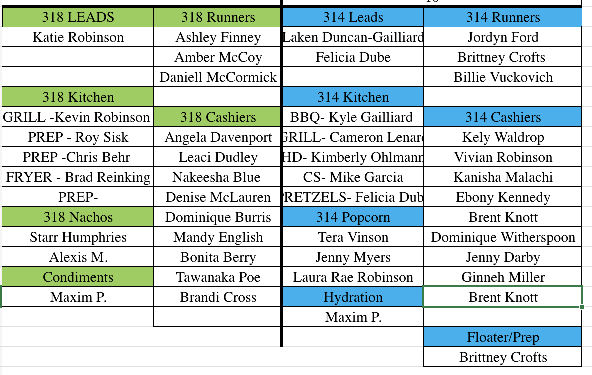 Concert Start Time is 5:45 pmAssignments will use all volunteers signed up on 5/18/2024