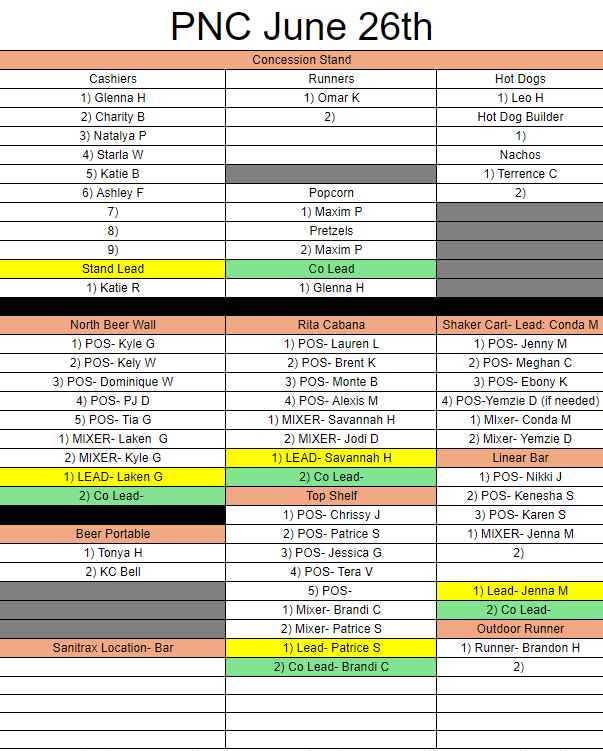 *Per PNC Live Nation would like for us to wear their shirts if you are working the outside bars. PLEASE make sure to get one at check in. If you are in the concessions stand please wear your red CDYC polo.