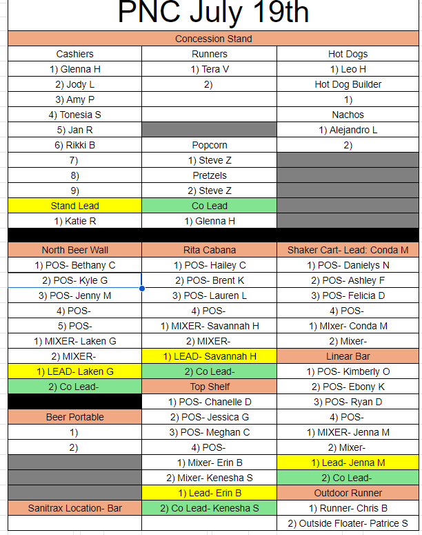 *Per PNC Live Nation would like for us to wear their shirts if you are working the outside bars. PLEASE make sure to get one at check in. If you are in the concessions stand please wear your red CDYC polo.
