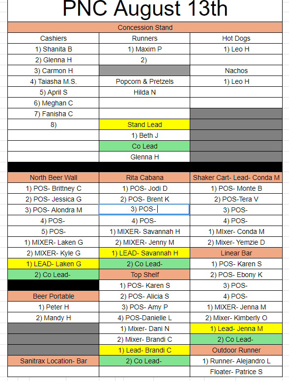 *Per PNC Live Nation would like for us to wear their shirts if you are working the outside bars. PLEASE make sure to get one at check in. If you are in the concessions stand please wear your red CDYC polo.
