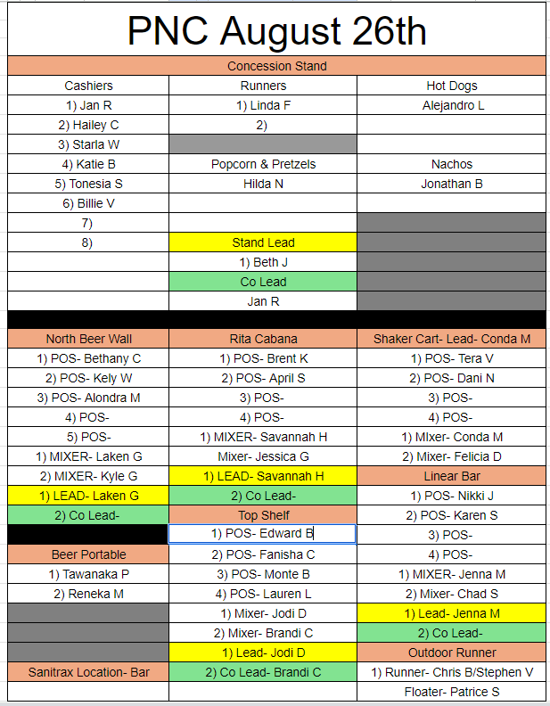 *Per PNC Live Nation would like for us to wear their shirts if you are working the outside bars. PLEASE make sure to get one at check in. If you are in the concessions stand please wear your red CDYC polo.