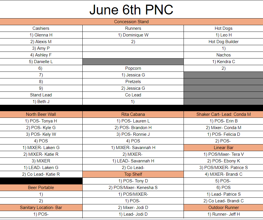 *Per PNC Live Nation would like for us to wear their shirts if you are working the outside bars. PLEASE make sure to get one at check in. If you are in the concessions stand please wear your red CDYC polo.