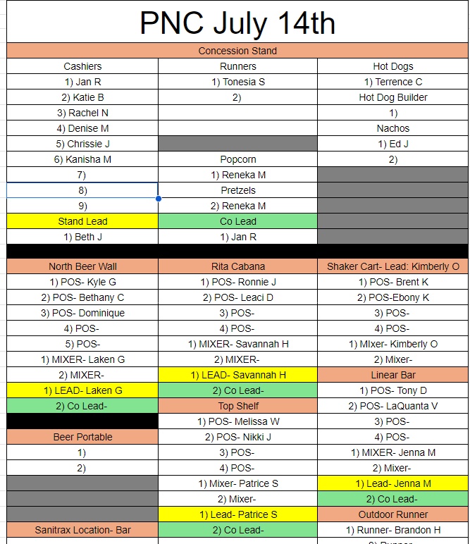 *Per PNC Live Nation would like for us to wear their shirts if you are working the outside bars. PLEASE make sure to get one at check in. If you are in the concessions stand please wear your red CDYC polo.