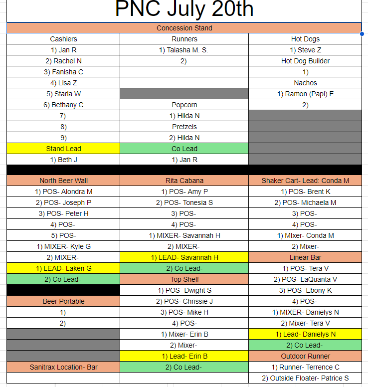*Per PNC Live Nation would like for us to wear their shirts if you are working the outside bars. PLEASE make sure to get one at check in. If you are in the concessions stand please wear your red CDYC polo.