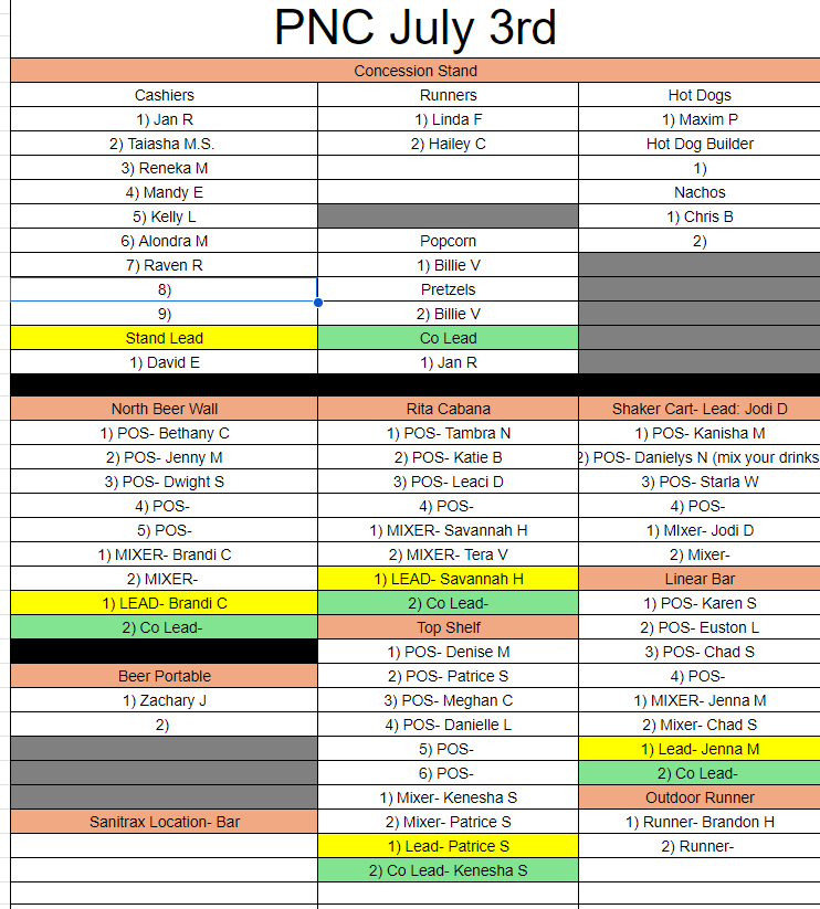 *Per PNC Live Nation would like for us to wear their shirts if you are working the outside bars. PLEASE make sure to get one at check in. If you are in the concessions stand please wear your red CDYC polo.