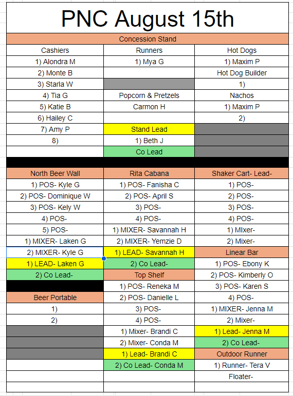 *Per PNC Live Nation would like for us to wear their shirts if you are working the outside bars. PLEASE make sure to get one at check in. If you are in the concessions stand please wear your red CDYC polo.
