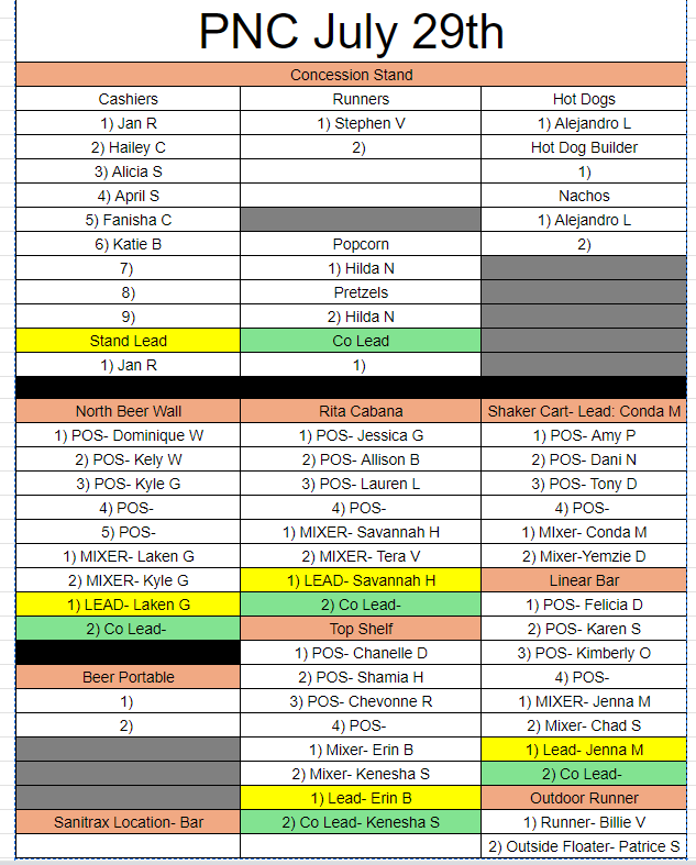 *Per PNC Live Nation would like for us to wear their shirts if you are working the outside bars. PLEASE make sure to get one at check in. If you are in the concessions stand please wear your red CDYC polo.